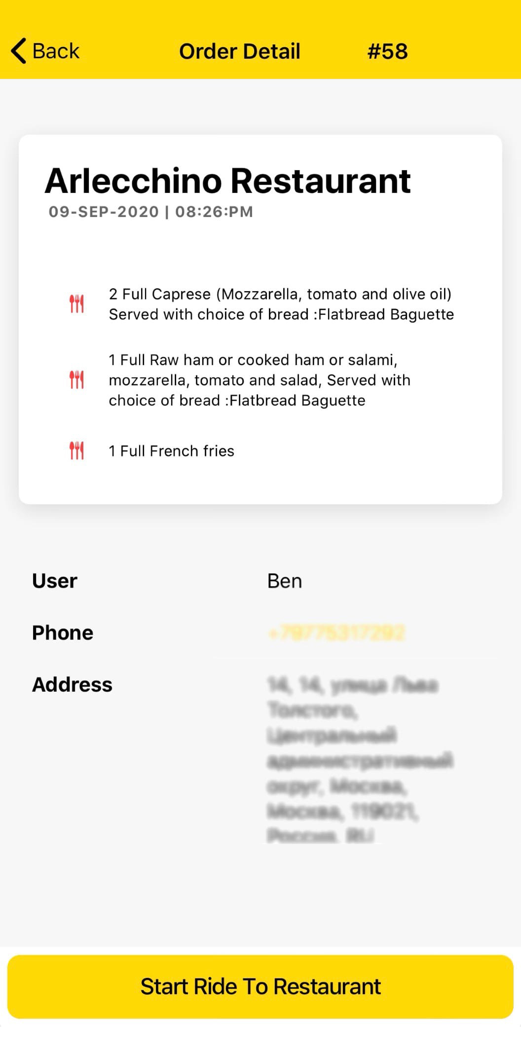 Operation of the app goes through a system from responses on the orders.